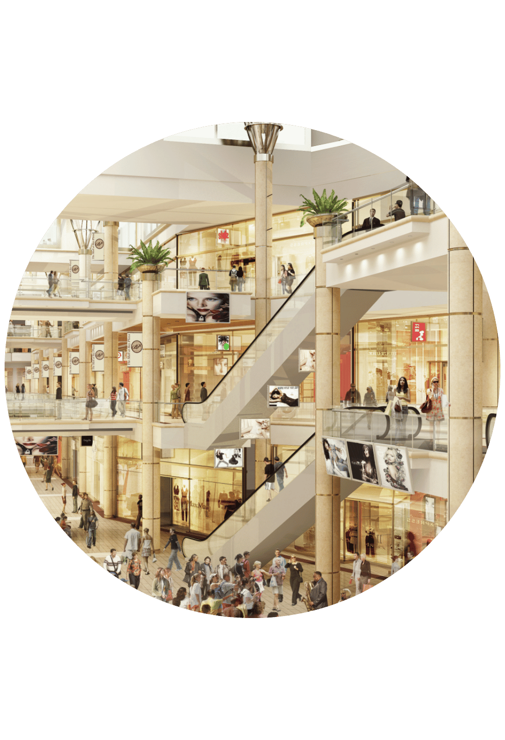 Proporcionamos experiência destacada e excelência de serviços para o cliente final, acreditando que shoppings de